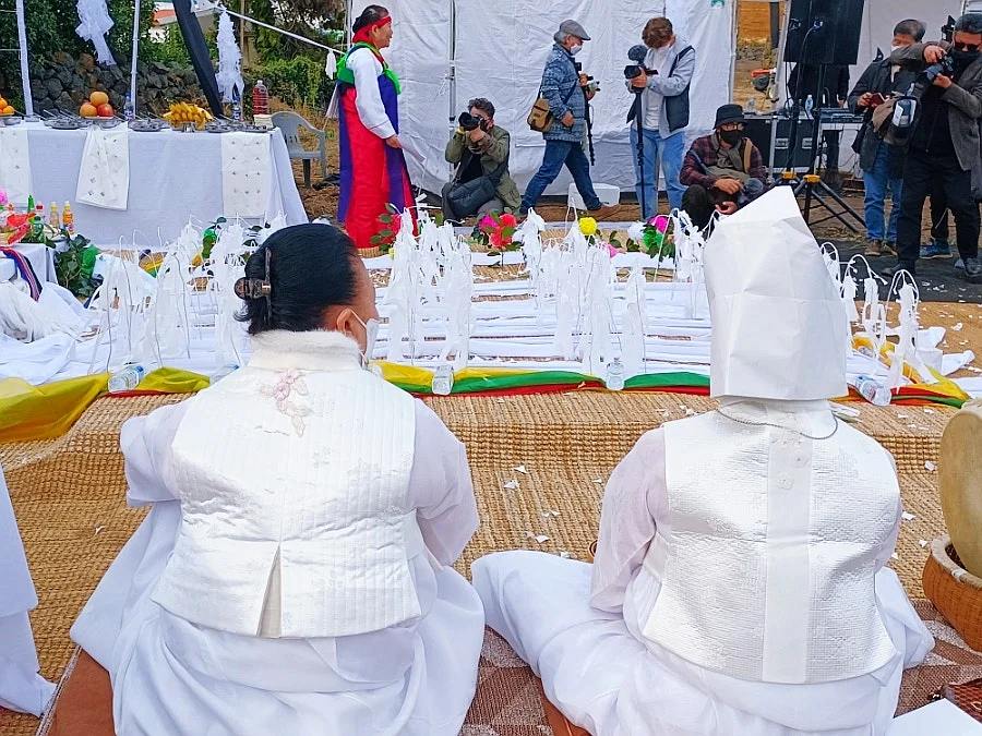 굽이굽이 사연 풀어내 고하며 위무하고 나아가 치유되길 기원하는 심방의 목청 굽이굽이 낭창했다.
