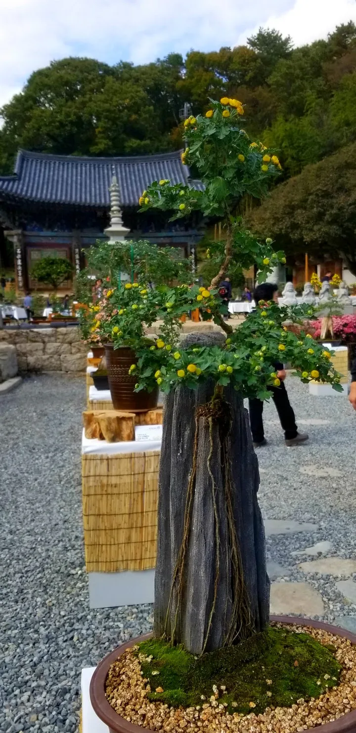 그랬다, 수목으로만 분재를 하는 줄 알았는데 국화로 연출시킨 분재는 그만큼 특이했다.