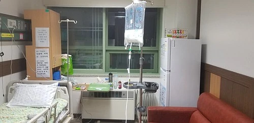 간단히 증세 묻더니 일사천리로 혈압 재고 당뇨 측정하고 혈액 채취부터 하고는 왼팔에 링거주사가 꽂히더라구요.