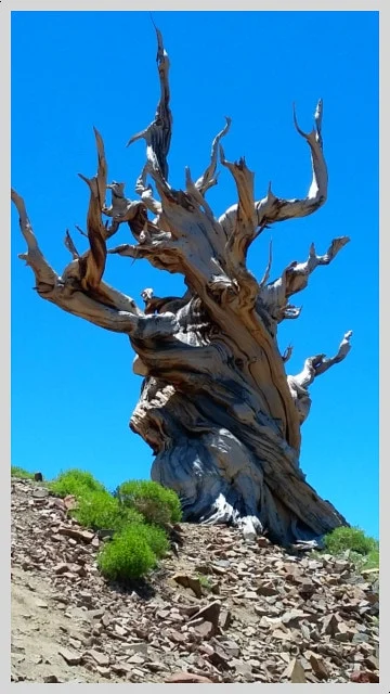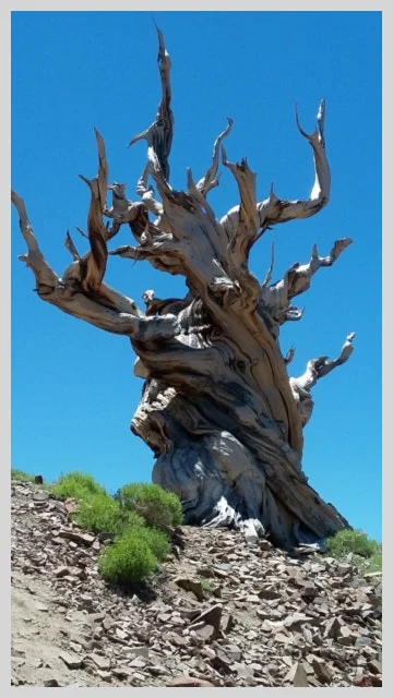 백운암과 석회암이 많아서 희게 보이는 White Mountain 산맥에서 서식한다는 Bristlecone Pine.