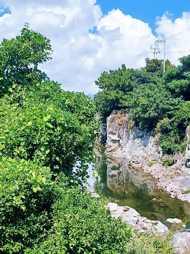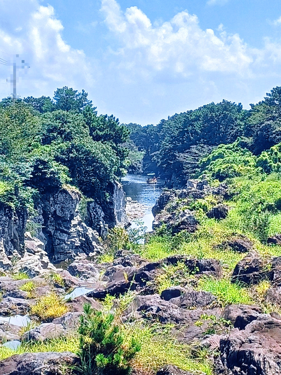 암록빛이었다가 청록빛 여울지는 쇠소깍이다.