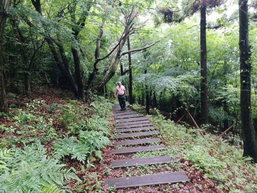 대체로 완만한 산이지만 산책길이 여러 갈래로 나있어서 경사로 대신 지그재그로 올라가는 길을 택했다.
