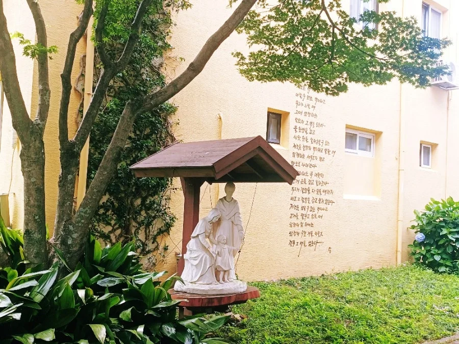 면형의 집 입구 앞마당에는 새하얀 김대건 신부님 조각상이 조촐하게 서있다.