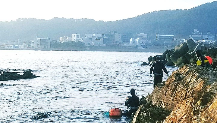 구름 뒤로 숨은 태양, 해풍은 부드러웠다. 그래도 예년에 비해 늦추위가 기승을 부리건만 파도 잔잔해 물질하기 좋다며 아침 여덟 시부터 입수한다고 했다.
