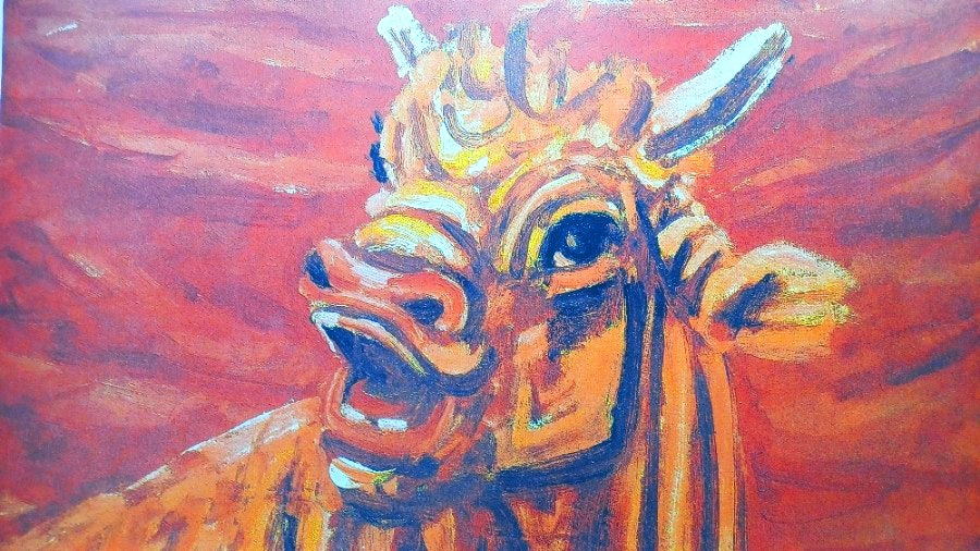 로비에서 이층으로 오르는 입구 왼편 벽에 걸린, 선 굵은 붉은 황소는 강렬한 표정 여전스러웠다.