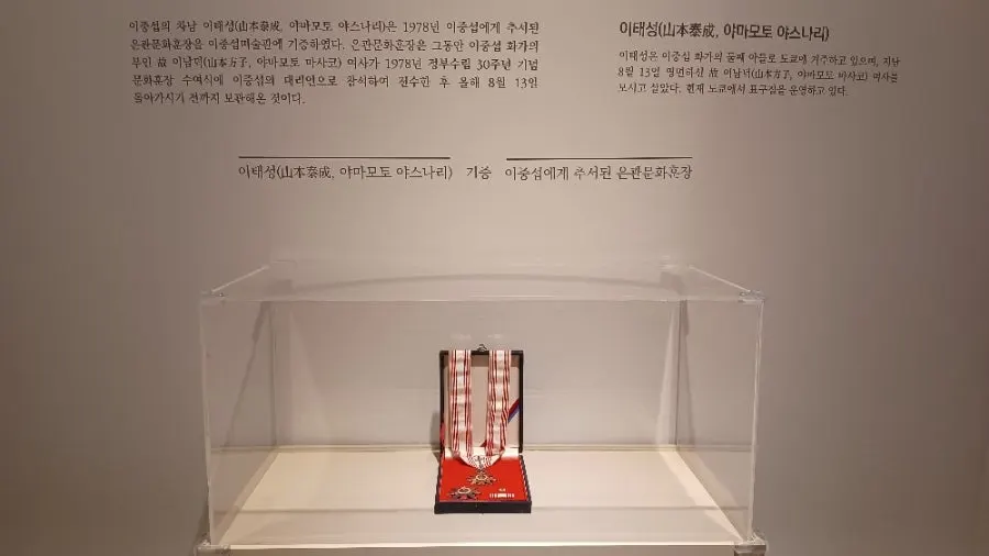 이중섭 화가의 차남으로부터 기증받은 이 추서 훈장은 타계하기 전까지 간직해 온 이남덕 여사의 유품이기도 하다.