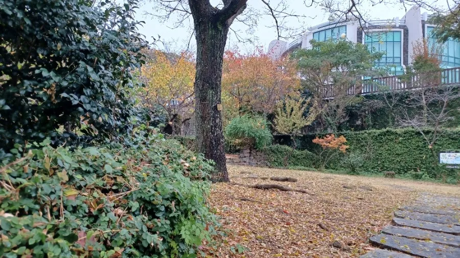 벚나무 낙엽이 인근 골목길과 공원 바닥에 흥건했다.