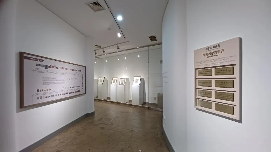 좌측 전시실은 이중섭거리 선포 25주년 기념사진전, 우측은 숭고한 기증 4부 '이태성, 서지현, 최열 기증자료전'으로 구성돼 있다.