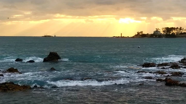 현관문을 여니 뜻밖에도 친구가 턱 하니 서있었다. 눈을 크게 뜨고 놀래라! 외쳤다. 그녀는 빨리 갑시다~하며 성큼성큼 해변 쪽으로 방향을 잡았다.
