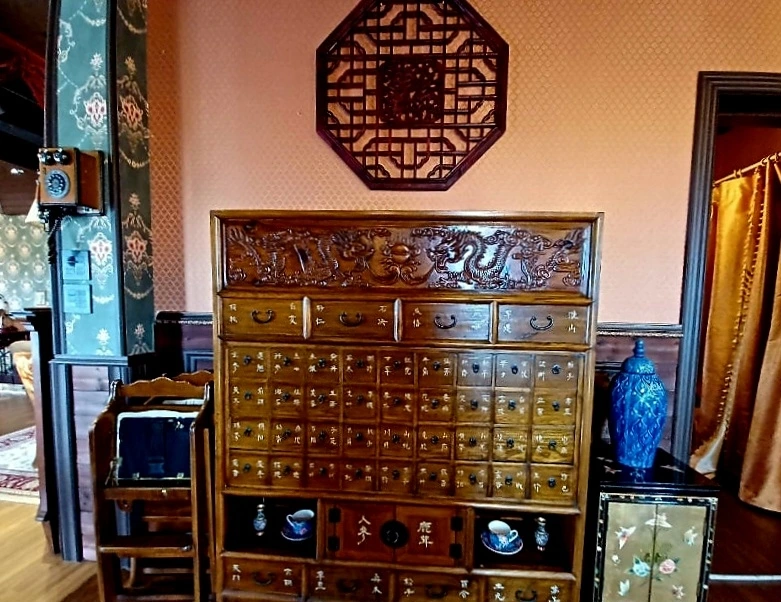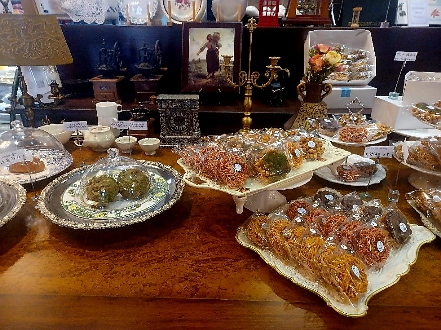 고가구 혹은 앤티크 소품 전시장인 양, 여백 거의 없이 빼곡하게 많은 양의 고급스런 집기류와 기명들이 눈길을 붙잡았다.