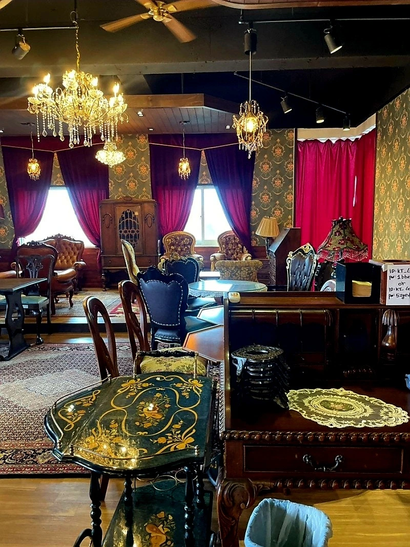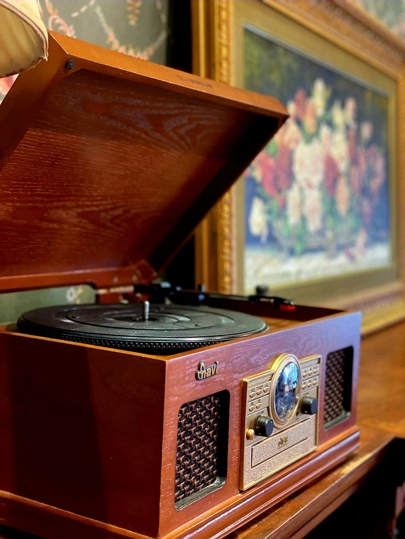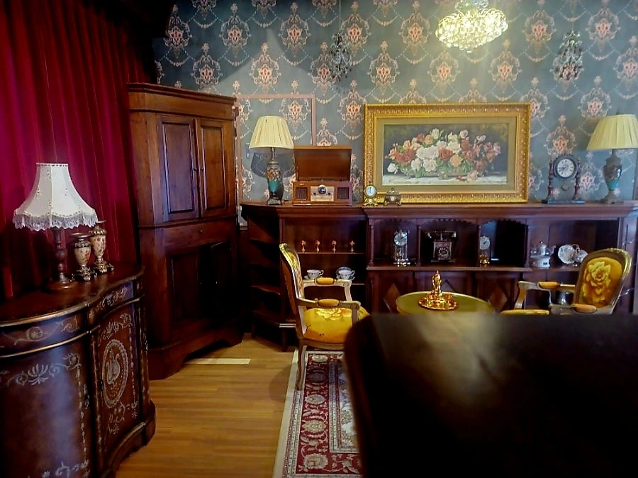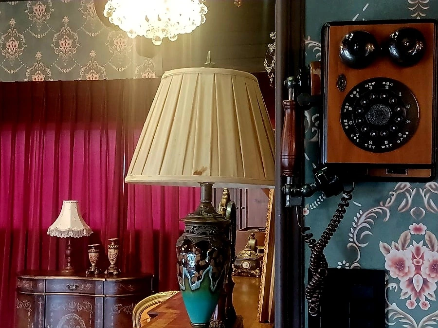 수동식 전화기, 축음기, 벽시계, 테이블 램프, 턴테이블, 소품 액자, 하나하나마다 디테일하게 처처에 배치시켰다.