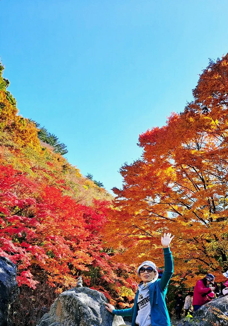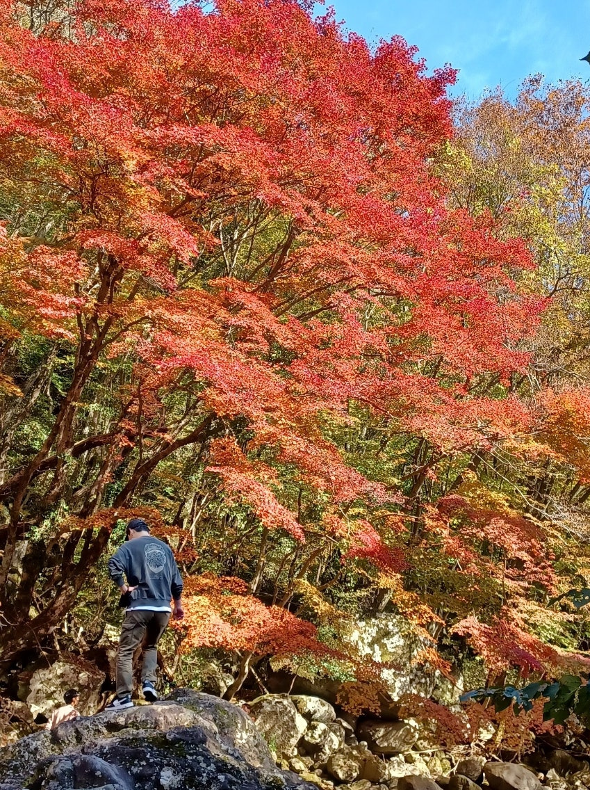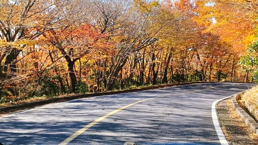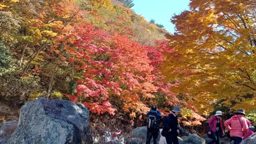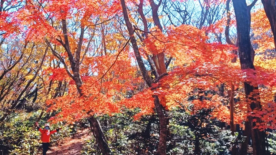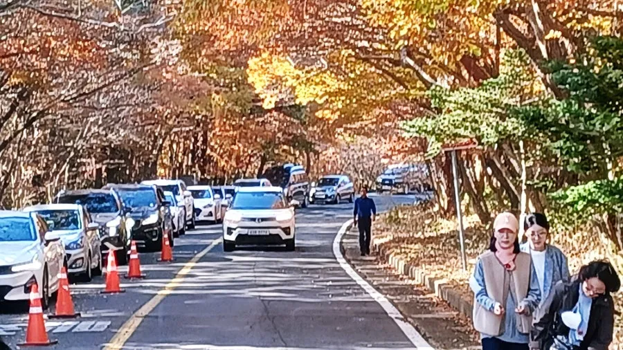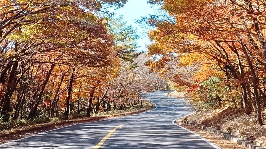 천백도로 얼마쯤 달려 올라가자마자 인근 숲 단풍이 눈부셨습니다.