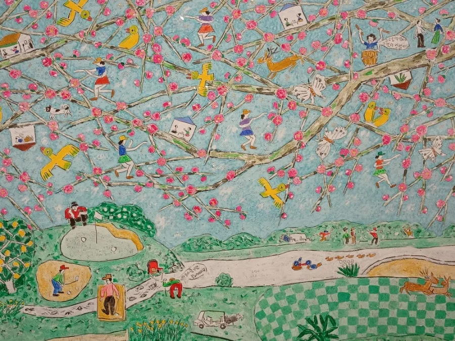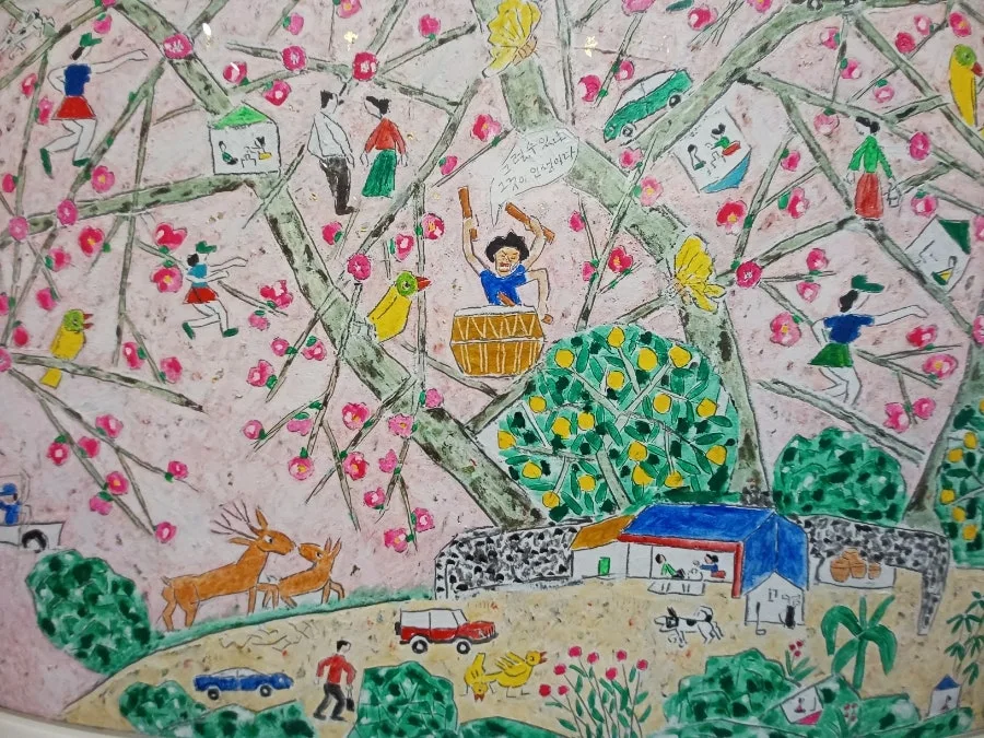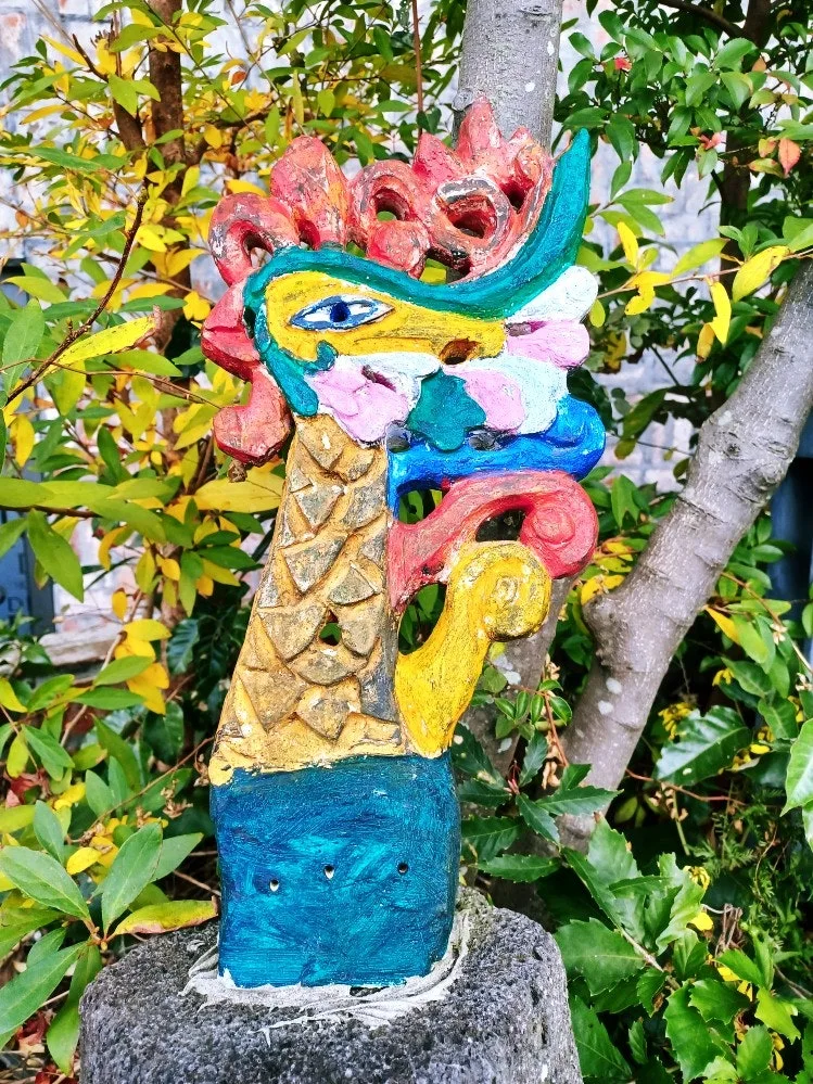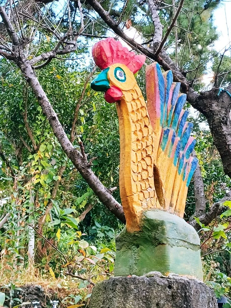 뜰에 선 알록달록 채색된 목조각 새들에서는 이승이 아닌 저승의