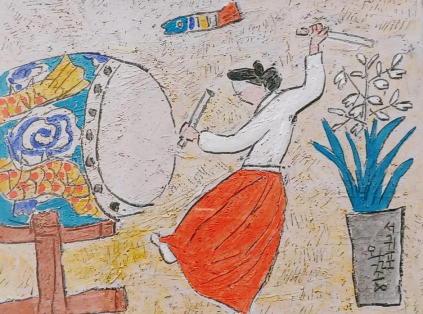그런가 하면 원시의 혼을 불러올 거 같은 타악기 소리와도 닮은 그림에선 야성의 날 것을 대하듯 한 생소함에 대한 충격파도 적잖았다.