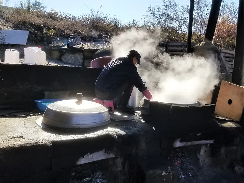 장작불이 괄게 타오르고 있었고 진국 맛을 우려내는 큼직한 가마솥에선 뿌연 김이 뭉텅뭉텅 솟아났다.