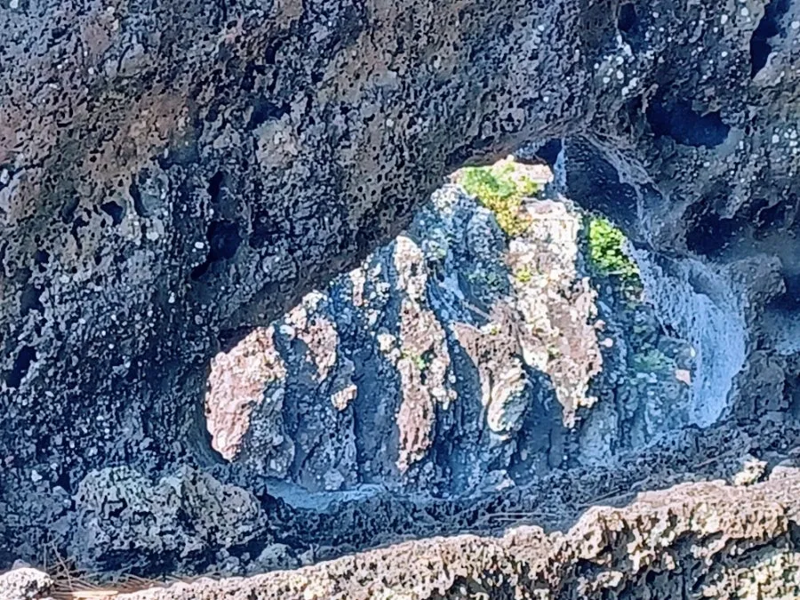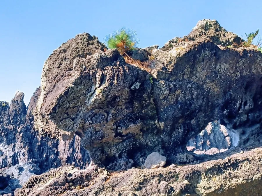 화산이 분수처럼 뿜어져 올라오다 그대로 엉겨 붙어 굳어진 지표면이라, 구멍 숭숭 나있는 다공질 현무암이기 때문이다.