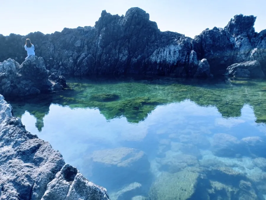 화산활동 흔적이 고스란히 남아있는 자리에 맑디맑은 호수가 천지처럼 펼쳐졌다.