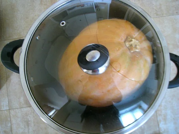 큼직한 찜통에 속을 채운 호박을 바로 세워 앉치고 약간의 물을 붓고는 중탕에 들어갔다.