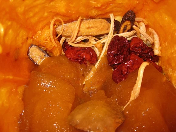 집에 있는 대추, 생강, 감초, 마른 도라지, 꿀을 호박 안에 넣을 요량으로 정히 씻어 물기를 거둬두었다.