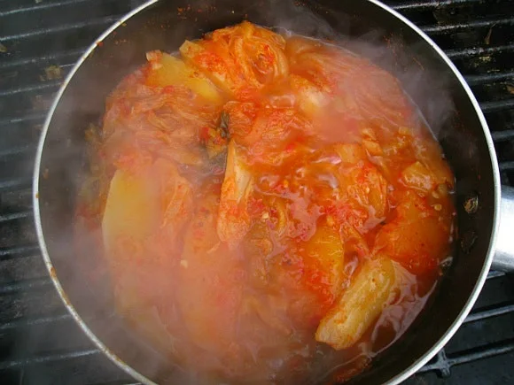 화로나 아궁이 숯불에 김치찌개를 끓여 먹었다.