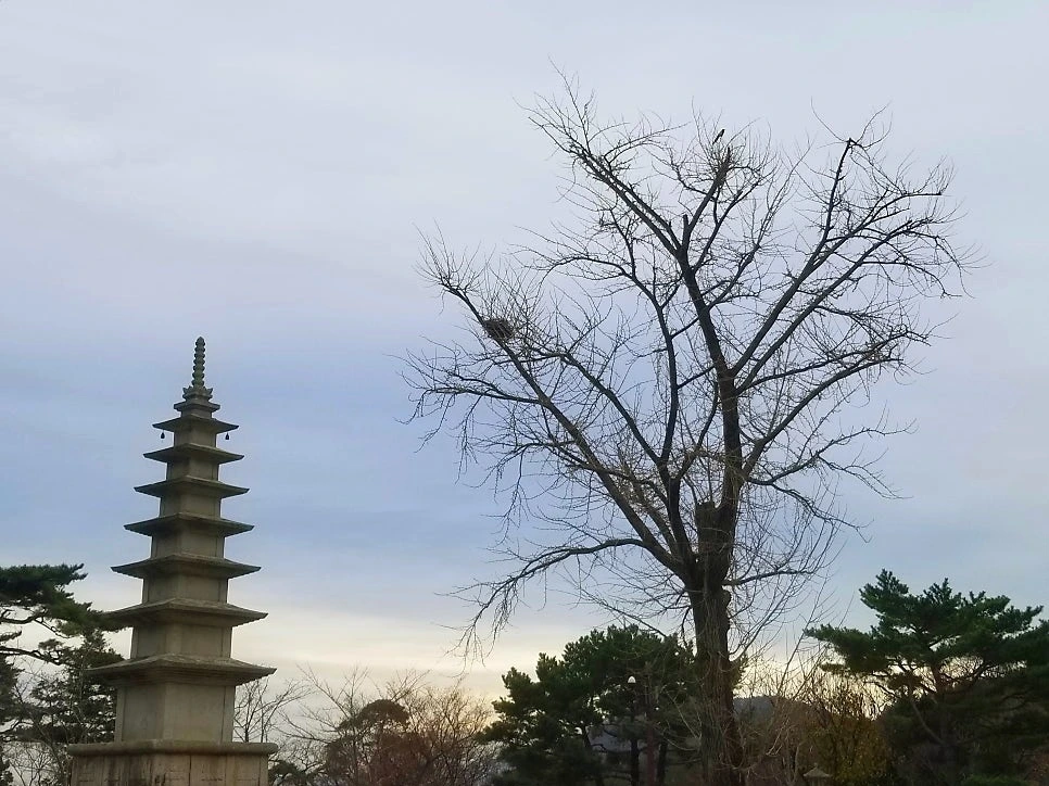 그 앞 어둠 속에 우두커니 선 석탑과 은행나무 누가 더 나이 들었을까?