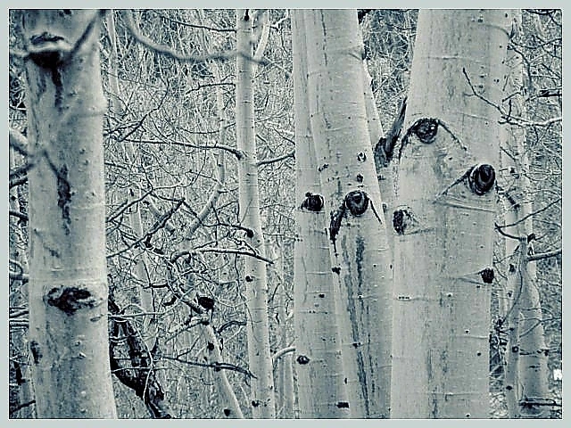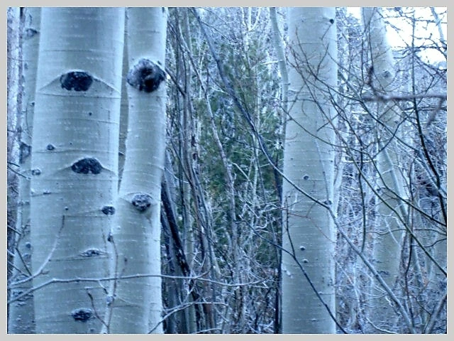 아스펜 숲 여기저기 사방 천지에 눈, 아무도 숨을 데가 없고 어떤 것도 숨길 수가 없겠다.