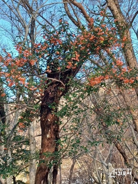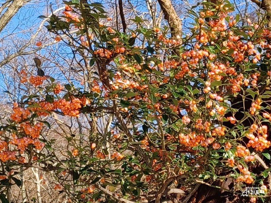 볕바른 대웅전 마당을 돌아 뒤꼍으로 가다가 숲 속 나무 둥치에 산호처럼 빛깔 고운 열매가 조랑조랑 달려있더라고요.