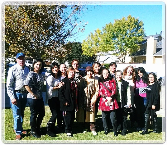 며칠 춥던 날씨가 풀리며 햇살 화창하게 내리는 오후, 야외에 차려진 식탁에 올려진 터키 두 마리는 잘 구워졌고 베이컨,부리토, 샐러드, 볶은밥, 호박과 애플파이, 케이크, 과일 등등 상차림이 다채롭고 풍요로웠다. 무엇보다 모처럼 학교 밖에서 한자리에 모이니 다들 하하 호호, 사진을 찍어대며 수다 떠느라 바쁘다. 그래도 먼저 식사 기도부터 했는데 에반젤리나가 영어와 스페인어로 각기 달리 한 기도는 아주 유창했다. 동서양 불문하고 입의 주기능이 먹고 말하는 것이듯 음식을 먹는 시간만은 그나마 조오용~했다. 터키만이 아니라 양식을 별로 좋아하지 않는 식성이라 여러 음식과는 대충 눈만 맞춰보고 갓 구운 빵과 샐러드로 식사를 대신했다. 모두들 덩치에 걸맞게 식성도 걸어 한 시간여 남짓 맛있게들 여러 차례씩 접시를 비우고 나자 분위기가 확 바뀐다. 이웃집 상관없이 음악 볼륨이 갑자기 높아지는가 싶더니 본격적으로 파티가 무르익어 이번엔 댄스타임이다.
