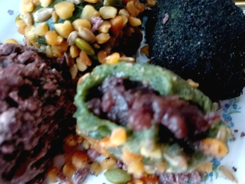 되직한 반죽을 호두알만큼씩 둥글게 빚어 분화구를 낸 다음 팥소 넉넉히 넣어 오므린다.