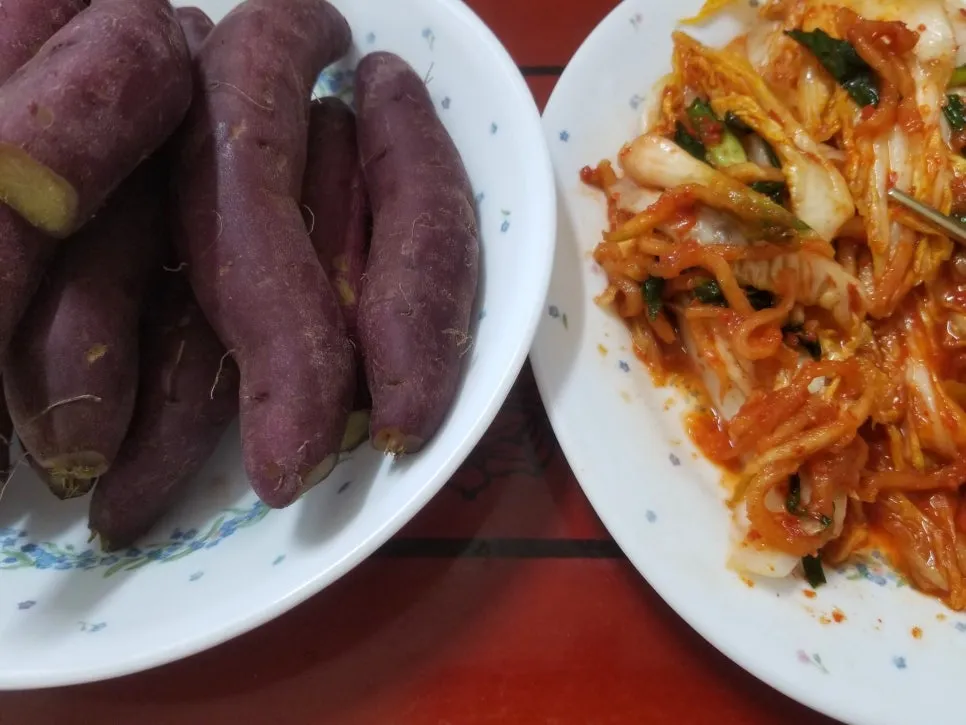 아직 생김치래도 알맞게 절여진 고소한 배추에 양념 간도 적당해서 고구마랑 곁들여 먹으니 눈 사락사락 내리던 어릴적으로 돌아간 기분이 듭디다.