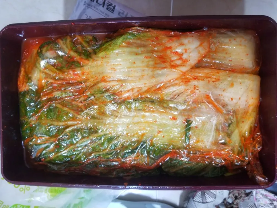 야물게 포장된 박스를 풀자 다시 신문 겹겹 둘러 안전장치를 한 김치통이 나오더군유.