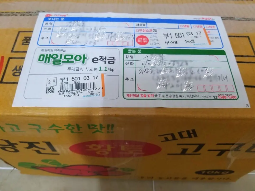 딩동~우체국에서 배달된 묵직한 소포를 받았어유.