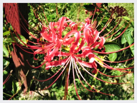 제철 맞아 무성한 꽃무릇을 세도나 상가 정원 테라스 기둥 옆에서 보자마자 하필 그때의 섬뜩했던 기억이 떠오르지 뭡니까.
