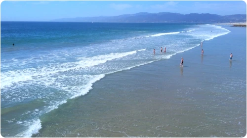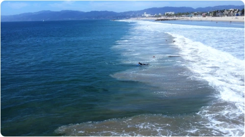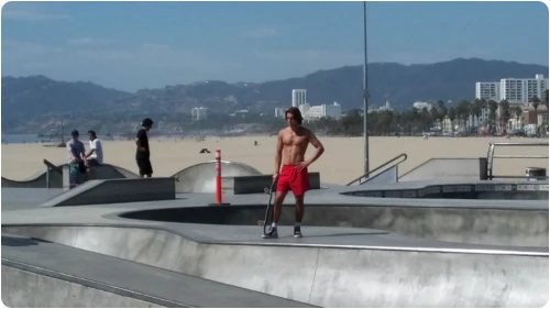 비치 입구에 테니스코트 등과 야외 트레이닝장까지 갖춰져 있는 머슬 비치는 분명 색다르고 재밌는 눈요깃감이다. 오션 프런트 웤(Ocean Front Walk)을 따라 롤러스케이트, 인라인, 롤러 보드를 타는 청년들이 휙휙 스쳐 지난다. 산타모니카 비치에서부터 남쪽 요트장이 있는 마리나 델 레이까지 자전거 코스로 연결되어 있다는 Venice Beach Bike Path도 옆을 따른다. 길가 양켠에는 모자며 티셔츠나 액세서리 등속을 파는 가게와 노점상들이 즐비하고, 한가로이 흐르는 인파 속에는 꾀죄죄 남루한 차림의 부랑자도 섞여있다. 바다를 마주 보고 서있는 앤티크풍의 해묵은 주택 곁에는 유리로 지은 현대 감각의 깔끔한 집 뜨락 의자가 아주 편안해 보인다.