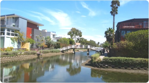 백여 년 전만 해도 베니스 비치는 쓸모없는 습지였다. 1836년 대홍수가 근처를 쓸고 지나간 후 근방에서 금이 발견되며 채광업자들과 이민자들이 대거 몰려들었다. 이태리의 베니스에 심취해 있던 Abbot Kinney는 담배사업으로 재력가가 되자 1905년 해안가 일대를 매입해 그의 파트너인 Francis Ryan과 함께 미국판 베니스를 만들겠다는 청사진을 펼친다.베니스 카날이 조성되자 처음엔 곤돌라와 사공까지 이태리에서 공수해 올 정도로 그들은 열성을 기울였다. 그러나 비치 리조트 타운이 본격 개발돼 사람들이 모여들면서 부작용이 불거지기 시작했다. 하수처리시설 등 난제를 풀지 못해 결국 운하를 메워 원상태인 습지로 환원시키기로 하였다. 그러나, 주민공청회와 투표를 통해 아취 어린 운하를 살리기로 온 시민이 힘을 모아 오늘에 이르렀다. 다양한 건축미와 예쁜 정원을 자랑하는 고급스러운 집들이 Venice Canals 양켠으로 촘촘 이어진 아름다운 풍광은 운하에 걸린 하얀 다리와 조화를 썩 잘 이룬다.