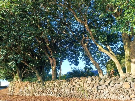 동백나무 군락지를 감싼 돌담이 트인 공간.