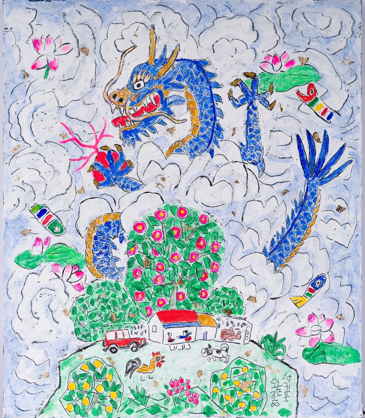 그의 그림은 아름다운 시다. 군더더기 없이 절제되고 최대한 농축시킨 시다. 시 중에도 순하고 고운 언어로만 빚은 동시 같다. 가슴으로 와닿는 진솔함이 그러하다. 따라서 엄숙하지 않고 천진난만하다. 능청맞을 정도로 천연덕스러운가 하면 정감 따스히 넘쳐나는 그의 작품을 보노라면 누구라도 표정 환해지게 마련이다. 절로 잔잔한 미소 그득 어리게 마련이다. 화폭마다 밝은 기운, 긍정 에너지가 샘솟는다. 다사로운 동심 품은 순수 무구한 세계가 살갑게 어우러져, 밝고 따스한 서정이 녹아들어서이다. 연연한 분홍, 산뜻한 노랑, 신선한 하늘빛 바탕에 펼쳐진 풍경은 더없이 여유롭고 화평스럽다.