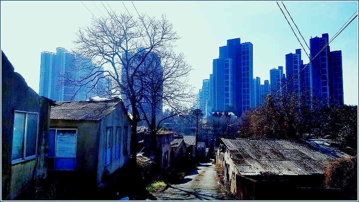 작정하고 찾아간 것이 아니라 우연히 하얀 건물에 솟은 십자가의 인도에 따라 수도원에 닿았습니다. 근자 들어 주변에 신도시가 개발되며 고층 아파트가 우후죽순처럼 솟아나는 바로 옆이건만 완연히 다른 세계가 펼쳐져 있는 '험지'를 거쳐서요. 실은 길을 잘못 들어 얼떨결에 흉물스러운 출입금지 구역에 들어섰던 거지요. 번영 한국에 이리 퇴락한 움막 군락지가 폐허인 채 남아있다는데 경악했는데요. 한센씨 주민들이 이웃의 작은 아파트로 이주한 지 근 이십 년이 되건만 구 거주지 철거가 안된 상태로 방치된 곳. 혐오감을 넘어 공포감이 드는 현장이 대단지 고가 아파트라는 광채의 뒷그늘로 자리했더라구요. 필시 우연만은 아니겠지요. 가뜩이나 겁 많은 사람인데 경끼 일으킬 정도로 험한 지역을 만나게 한 까닭은요. 천차만별 세상사의 적나라한 이면을 통해 편벽된 관점의 폭을 넓히라는 뜻이었을까요.