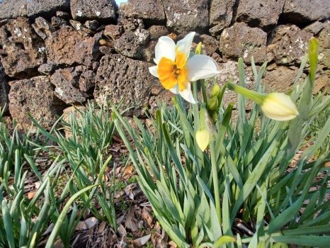 한겨울에 피는 꽃으로 동백과 매화를 꼽지만 목본류와 달리 수선화는 여린 초본류다.