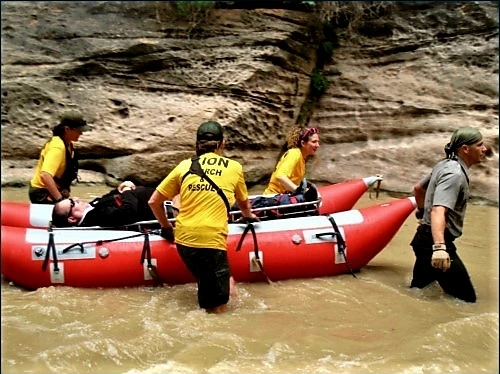좁고 긴 협곡 양옆으로 까마득 솟구친 암벽들의 장엄미에 저마다 경탄 보낸다. 비경들 사진에 담고 싶어도 불투명하니 바닥의 돌을 볼 수가 없는 상황이라 장님 길 더듬듯 조심해야 하는 발걸음. 온 신경을 발끝에 모으고 걸어 나가는데 갑자기 우레소리가 들렸다. 와우~ 일행들은 저마다 두렵다는 듯 비명을 지른다. 그도 그럴 것이 암벽에 되울려 퍼지는 뇌성은 음향효과 한번 끝내줬다. 게다가 잠시 후 노란 옷들이 보이는가 싶더니 구급환자를 실은 구조대 보트가 강을 따라 급하게 내려왔다. 그래도 계곡을 거슬러 전진하던 우리였으나 곧 발을 되돌리게 한 것은, 넋이 빠진 듯 물가 바위에 기대듯 누워 구조대를 기다리고 있는 젊은 아가씨를 본 이후였다. 그녀를 둘러싼 사람들의 심상찮은 표정도 그러하지만 탈진해 망연자실에 빠진 그녀 얼굴을 보자 전의를 완전 상실하고 말았다.