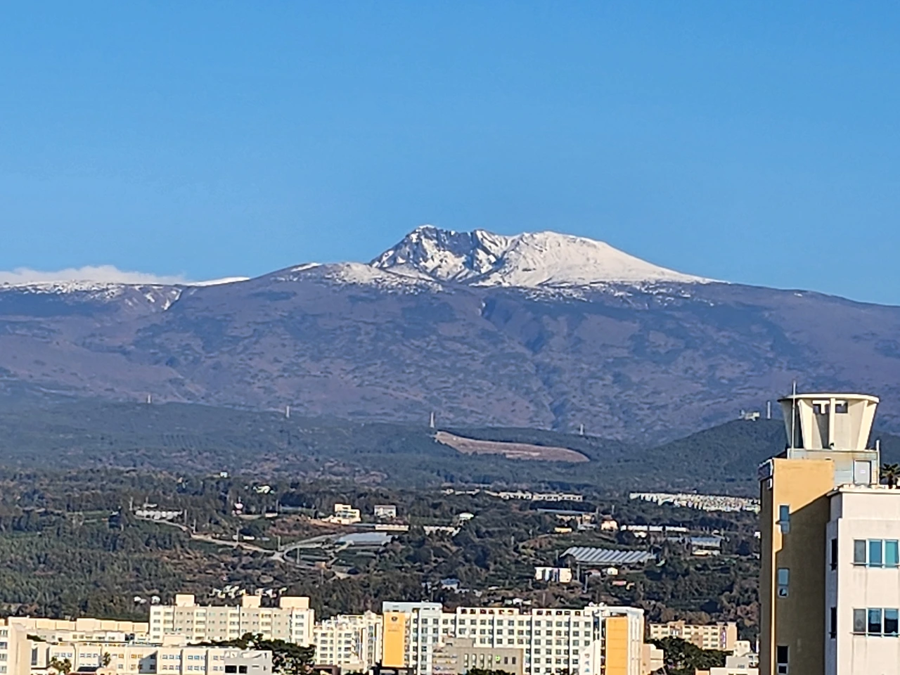그러나 부옇게 비구름에 파묻힌 한라산은 영하 3도를 기록하고 있다.