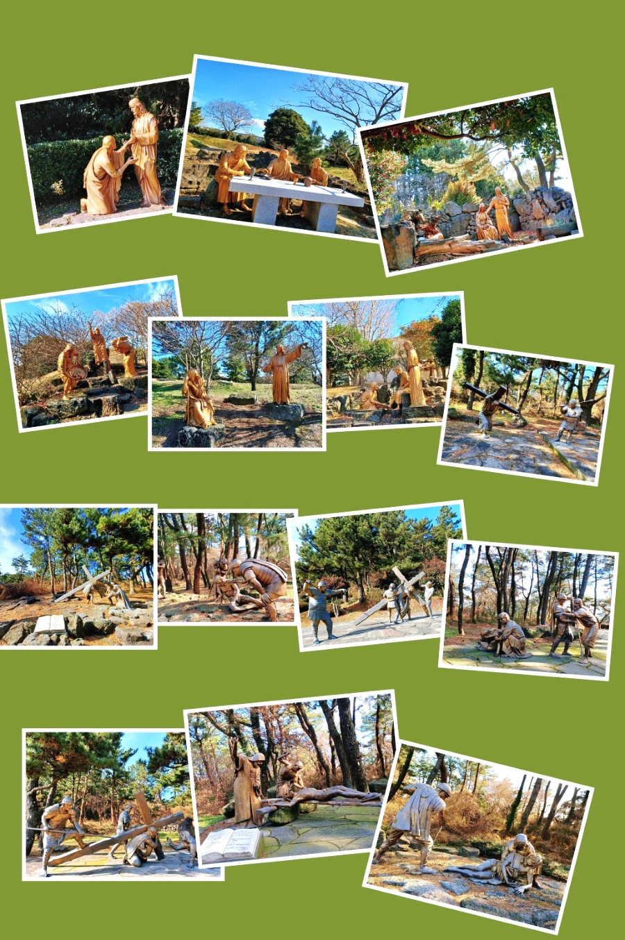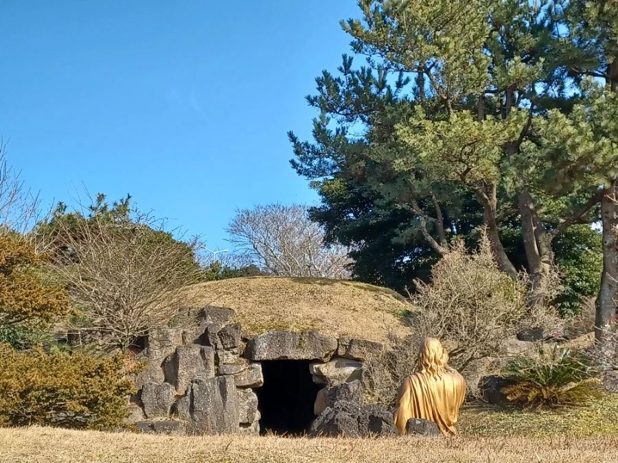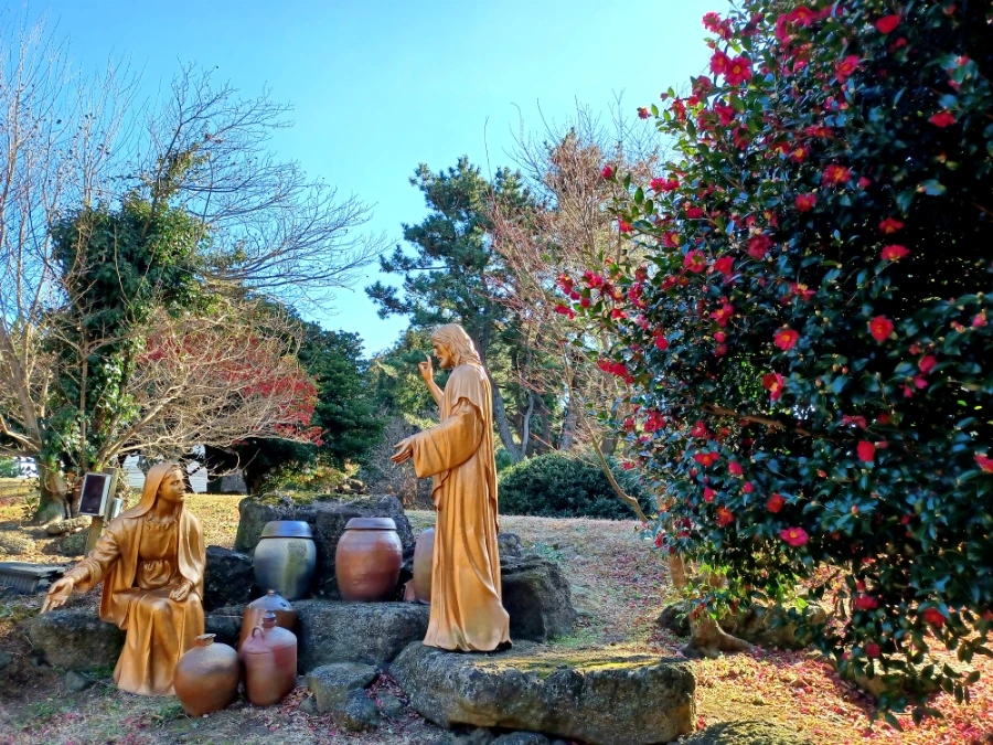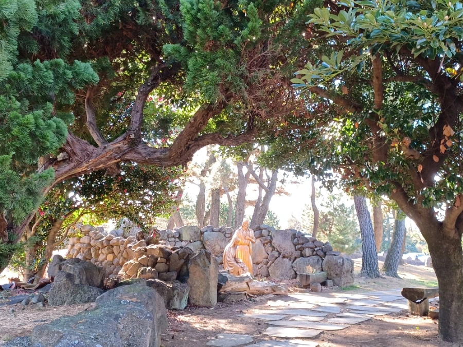 성이시돌 목장에 가면 신자 비신자를 막론하고 자기정화를 위해 새미 은총의 동산은 필히 들러 볼 만합니다. 삼나무 소나무 어우러진 숲과 잘 가꿔진 조경수들로 둘러싸인 아담스런 호수 새미소 주변은 성서공원으로 다듬어졌는데요. 예수님 생애 일화와 기적들이 실물대 크기로 조각돼 있는 '예수 생애 공원'은 배경 조경수와 조각품이 절묘하게 조화 이뤘고요. 성서 속의 예수님 수난을 묵상하며 기도하는 ‘십자가의 길’을 비롯해, 산책하며 묵주기도를 바칠 수 있는 ‘묵주 기도 호수’와 야외 미사가 이뤄지는 ‘성모 동굴’ 등이 감동을 줍니다.