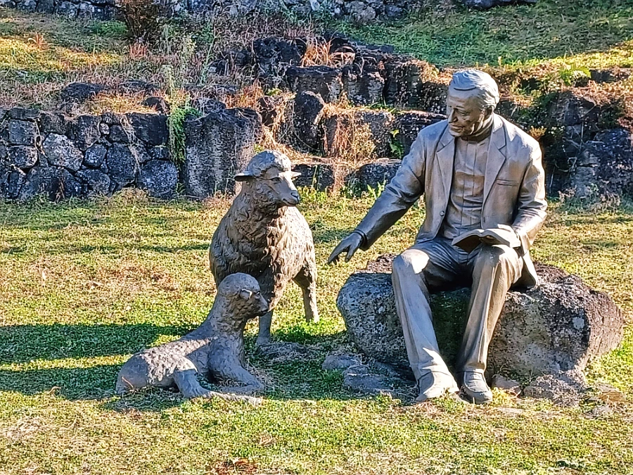 육지에 갔다가 그는 새끼 밴 요크셔 돼지 한 마리를 끌고 와 그 돼지가 낳은 새끼 열 마리로 돼지 신부님이란 애칭도 붙게 됐다지요. 양돈업이 번성해 만 오천 마리로 늘어나자 1980년 무렵 농가에 돼지를 골고루 분양해 주었는데요. 그렇게 주민들의 자립을 도운 결과 잘 알다시피 현재까지 양돈은 제주의 중요 산업 자원으로 자리잡게 되었답니다. 한라산 중산간 지대의 드넓은 황무지를 개간하여 그는 1961년 성 이시돌의 이름을 따서 목초지에 중앙실습목장을 만듭니다. 그곳에 뉴질랜드에서 들여온 면양과 호주에서 도입한 소를 방목해 대규모 목장을 운영, 동양 최대 이시돌 목장으로 성장시켰지요.