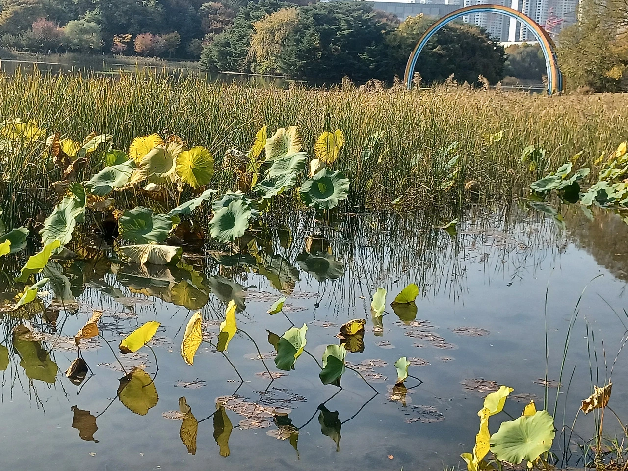 연잎은 눗누렇게 시들었으며 연밥은 저마다 고개 푹 꺾인 채였다.