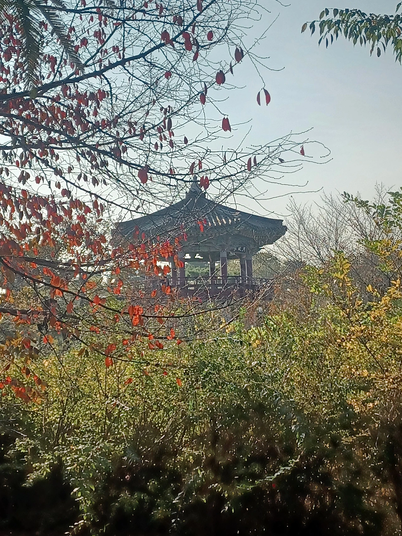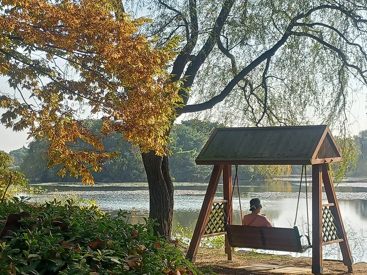반사적으로 까치발 하고 나무 우듬지까지 훑었지만 단풍 든 나뭇잎 무성해서인지 까치는 보이지 않았다.