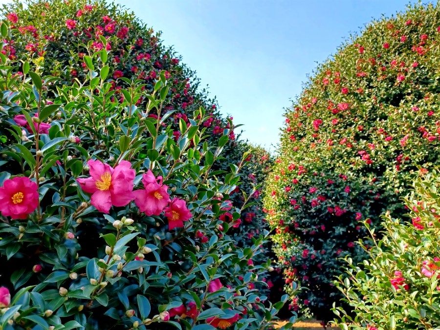 처음엔 동백나무가 방풍림처럼 귤농장을 둘러싼 듯 보였는데 점차 애기동백으로 수종을 바뀌며 훌륭한 수목원으로 거듭났다.