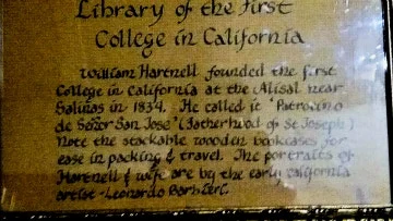 카멜미션을 둘러보다가 뮤지엄 안의 침침한 작은 방에서 캘리포니아 최초의 도서관을 만났다.