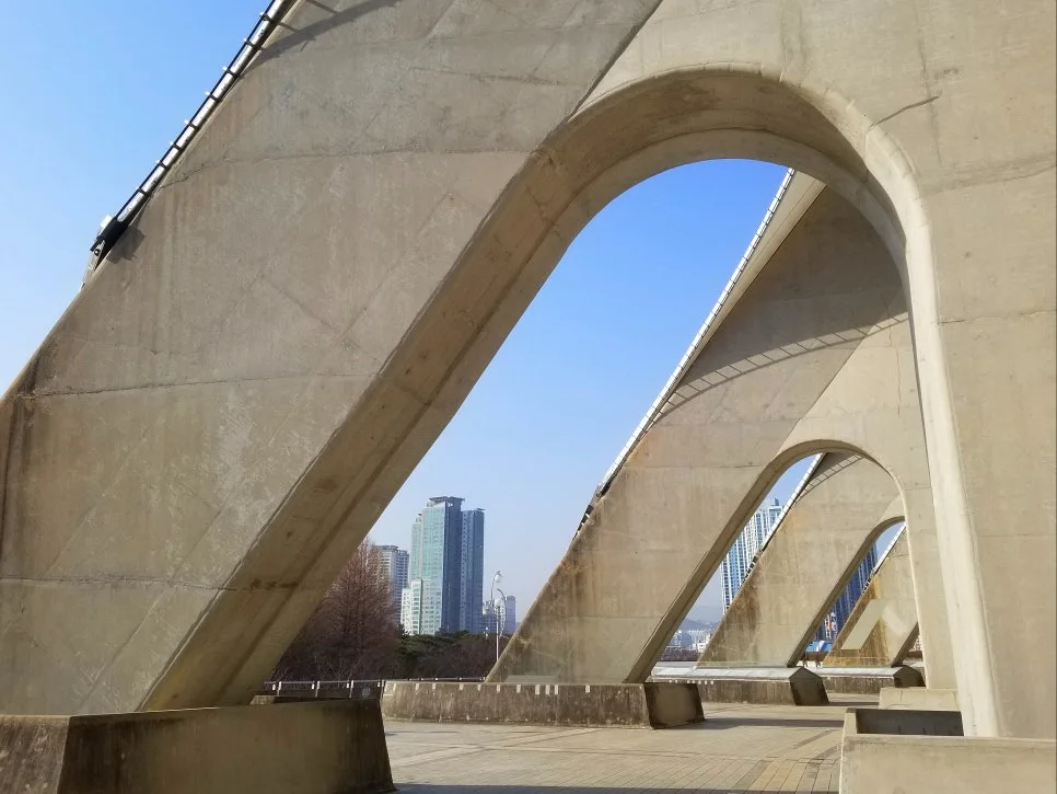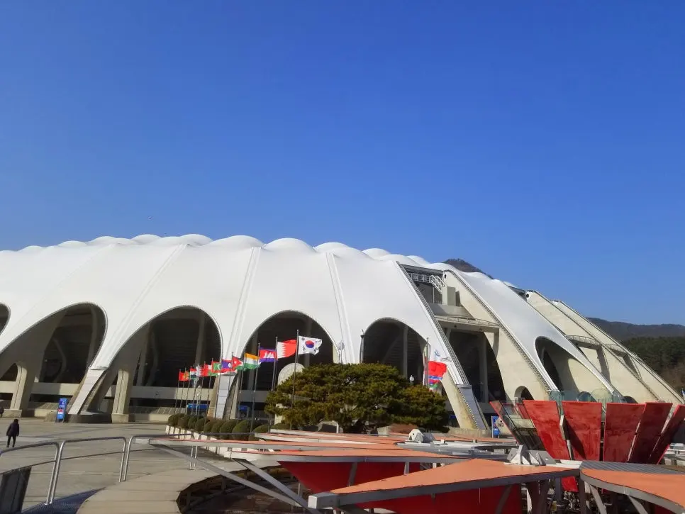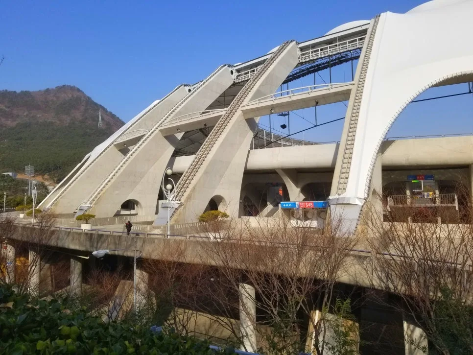 부산은 옛 지명 가마뫼가 이르듯 높은 산 아래 가마솥 형상을 한 지역이다. 금정산맥과 황령산맥 사이로 길게 뻗은 특이 지형이라 만성적인 교통정체에 시달려왔다. 일찍이 지하철이 개통되고 근자 들어 터널과 교각 등 토목기술의 발달로 교통난이 해소되며 숨길이 좀 트이긴 했다. 항만도시 부산은 이제 가덕도 신공항만 열리면 비약적인 웅비를 하게 될 터이다. 한국 제2의 도시 부산을 대표하는 랜드마크가 된 부산아시아드경기장. 뉴 밀레니엄의 비전을 담다, 란 슬로건을 내걸고 국제적 위상을 상징하는 스포츠 시설물을 시공한 현대건설의 이 야심 찬 건물은 한국건축문화 대상을 받은 바 있다. 언젠가 한번 와봐야지, 벼르던 곳인데 계제 김에 오늘 구석구석 차지게 둘러보았다.
