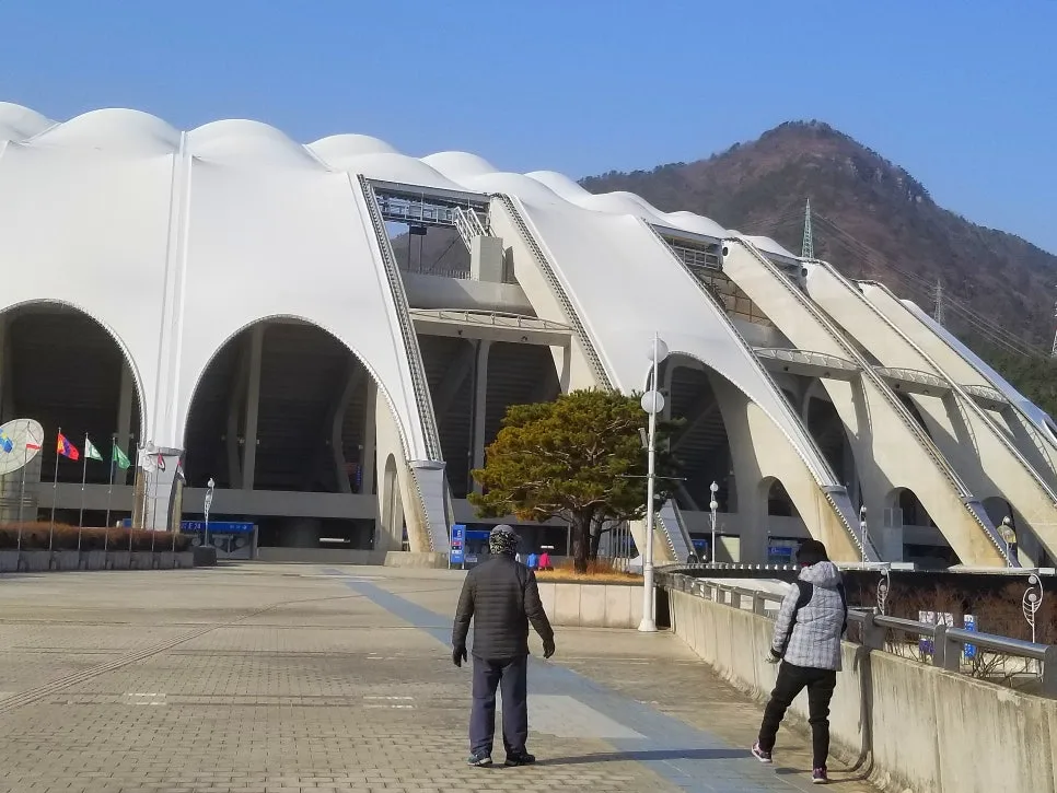 맹위 떨치던 한파가 약간 누그러진 아침. 월드컵 대로 쪽에 볼일이 있어 외출한 김에 부산종합운동장을 찬찬히 구경했다. 원래 사직야구장이 있었으나 운동에 별 흥미가 없었던지라, 부산 살 적에 한 번도 와본 적이 없다. 그 자리에 세워졌다는 스타디움의 웅자를 처음 본 것은 이민 여섯 해 만에 귀국했던 한밤중이었다. 아들 일터는 바로 그 이웃에 있었다. 근무처를 보여주고자 공항에서 오는 길에 들렀는데, 창가에 서니 근처 야경이 한눈에 들어왔다. 항도답게 한껏 바람 안은 범선 폭 같기도 하고 파도와 갈매기 형상도 연상되는 하얀 건물. 그 안에서는 때마침 휘황한 조명 아래 야구 경기가 무르익어가고 있었기에 군중들의 함성이 병원까지 들렸다.