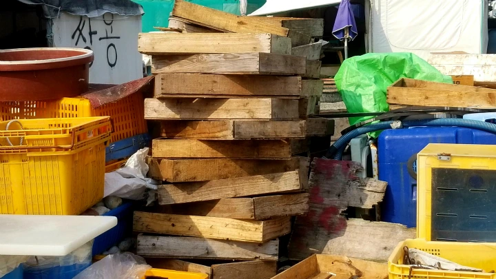겹겹이 쌓인 생선상자며, 빙 둘러 낚싯바늘이 달려있는 플라스틱 바구니며 그 모두가 호기심 일구기에 충분했다.